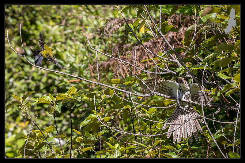 Bell Bird attacks Long Tailed Cuckoo