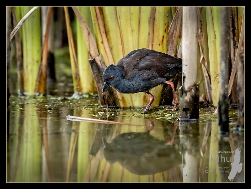 Juvenile Spotless crake feeding in the raupo