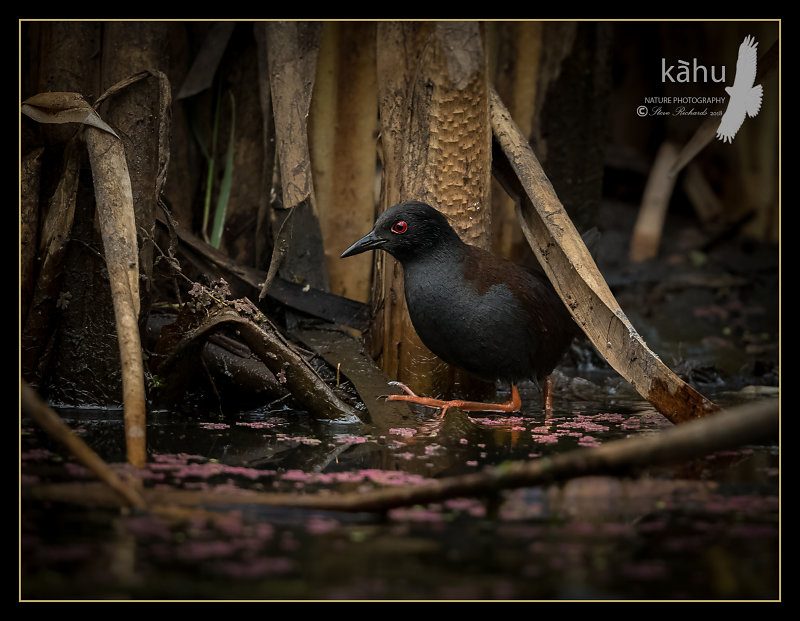 Spotless crake sneaking through raupo
