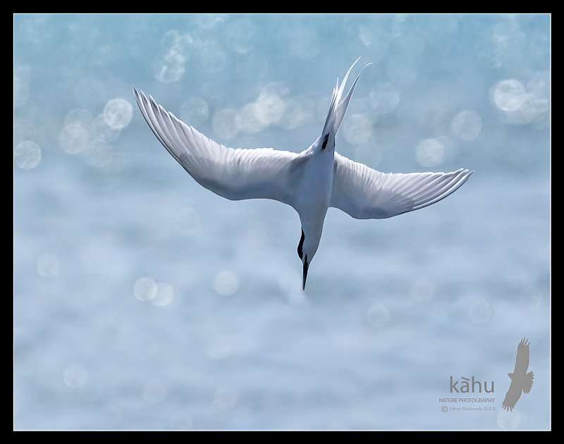 Diving white fronted tern
