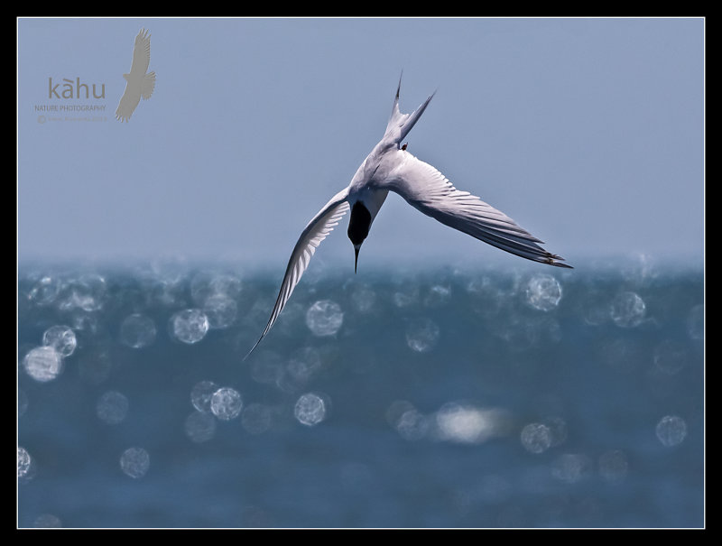 Diving white fronted tern