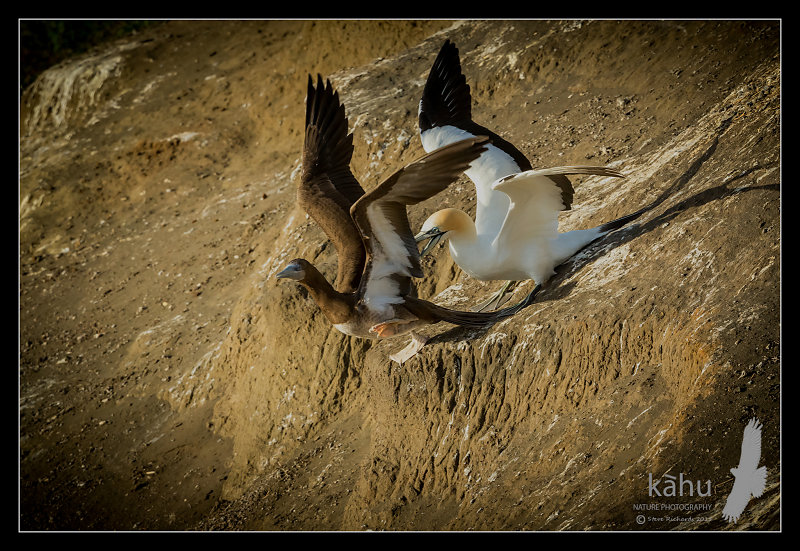 Brown Booby attacked by gannet, Muriwai