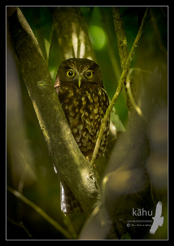 Morepork in dense forest