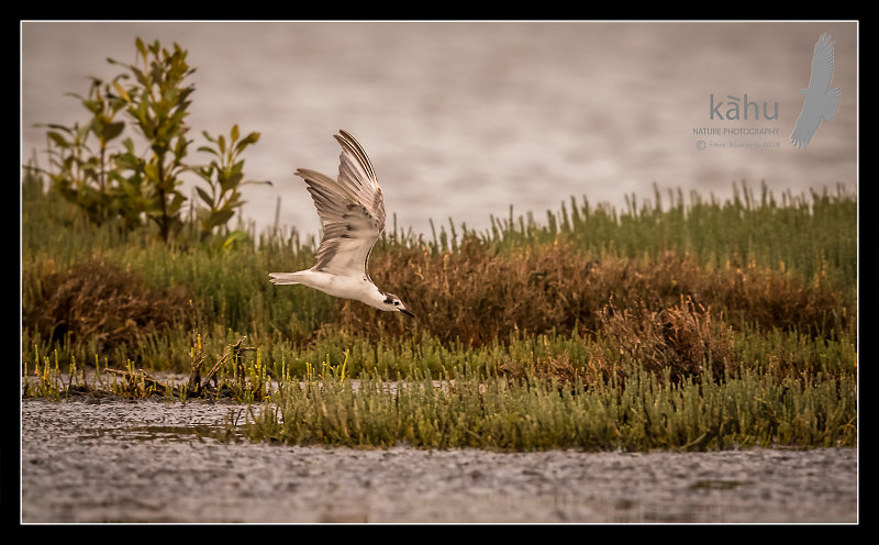 Juvenile White-winged black tern hawking stilt ponds at Miranda
