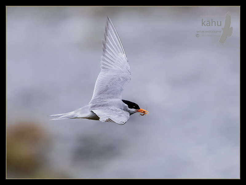Black fronted tern with an insect