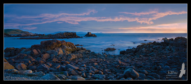 Cosy Nook, looking across Foveau Strait with Stewart Island in the distance