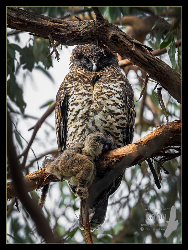 Powerful Owl with a ring tailed possum